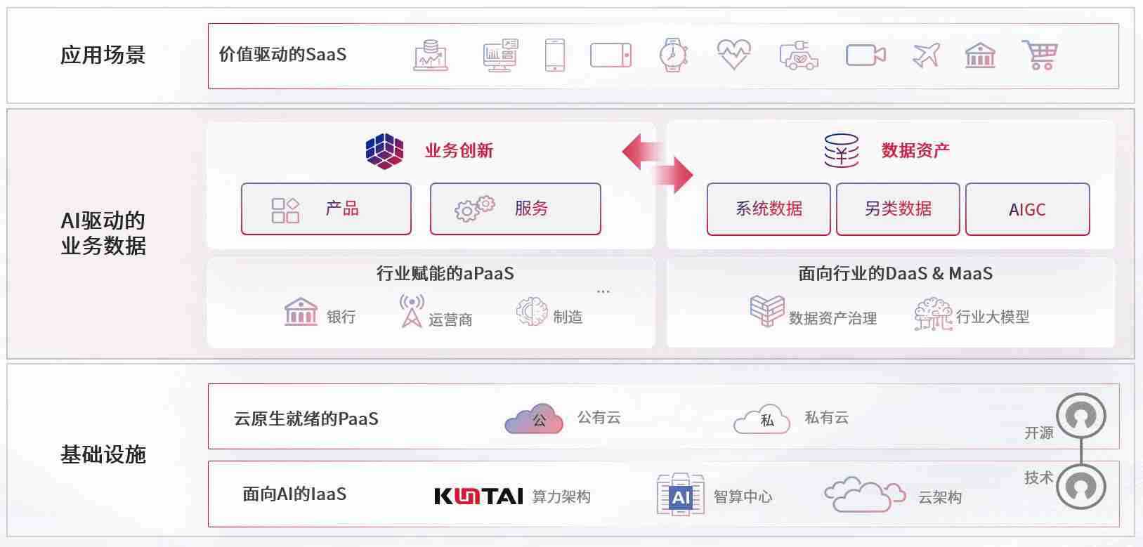 数字时代,,,围绕企业数字化转型的关键要素,,PG国际数码开创性的提出数云融合战略和技术体系框架,,,着力在云原生、、数字原生、、、AI原生和信创产业上架构产品和服务能力,,为处在不同数字化转型阶段的快消零售、、、汽车、、金融、、、医疗、、、、政企、、、教育、、、运营商等行业客户提供泛在的敏捷IT能力和融合的数据驱动能力,,构建跨界融合创新的数字业务场景和新业务模式,,助力企业级客户建立面向未来的核心能力和竞争优势,,全面推动社会的数字化、、、、智能化转型升级。。